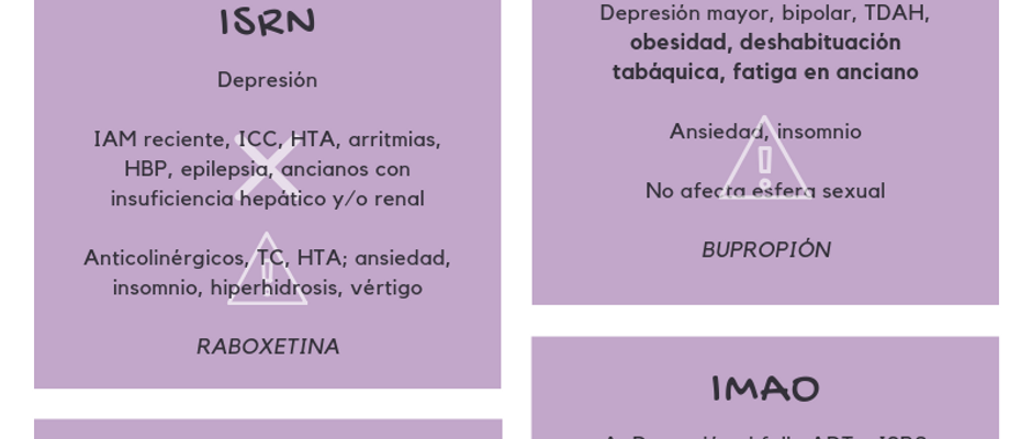 Lara GR3 oct 20190 Min. de lecturaAntidepresivosInfografía sobre los principales grupos de antidepresivos, sus contraindicaciones, reacciones adversas y fármacos